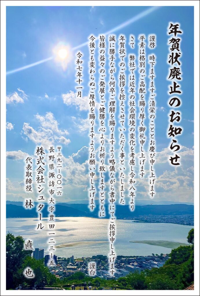 さて 弊社では近年の社会環境の変化を考慮し令和八年より年賀状でのご挨拶を控えさせていただく事といたしました